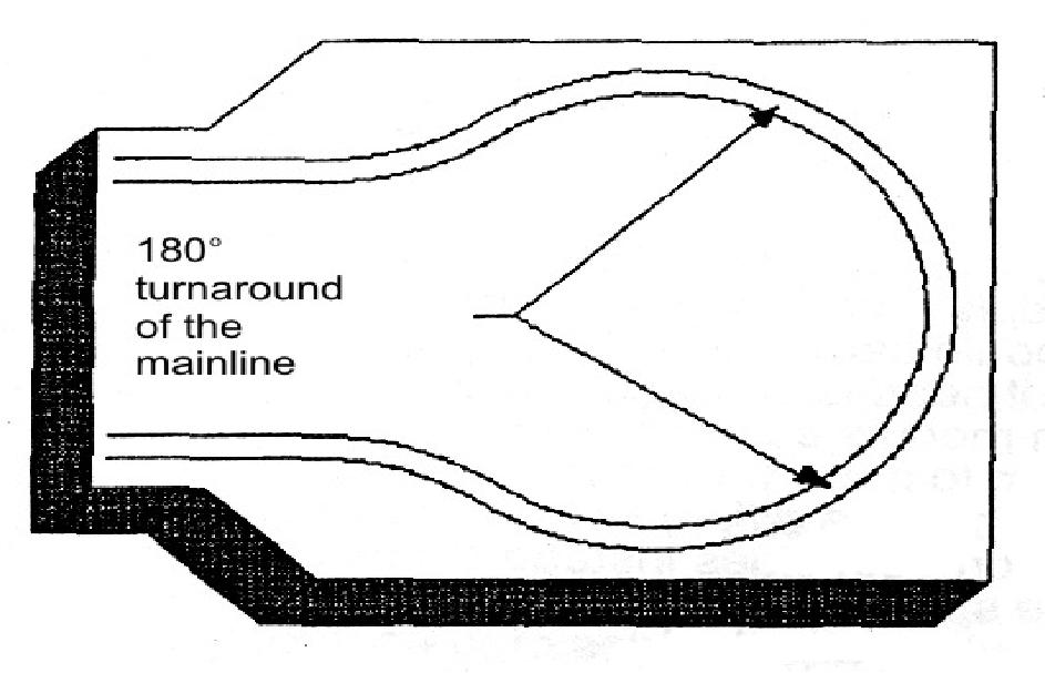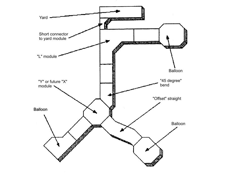 As mentioned earlier, Bend Track requires at least two balloon modules instead of the four modules required for the traditional modular setup. These balloon modules must retain the basic minimum standard radius, which we will discuss later. They can be of any size or shape that you desire or which will fit your need as long as the tracks return to the same 30 inch interface profile.