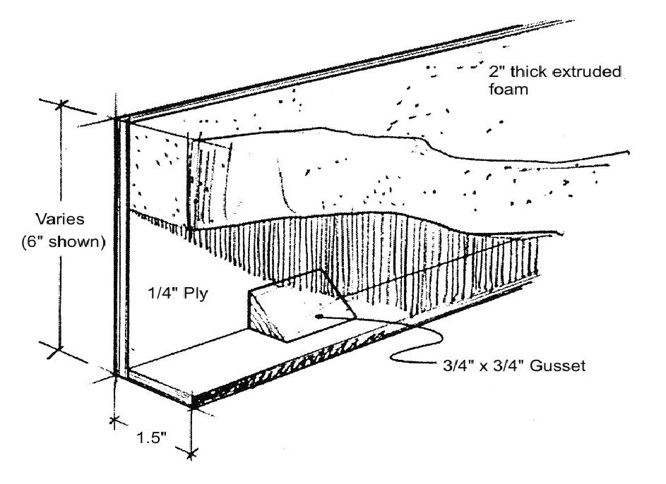 7. The top will be 2 inch thick extruded styrofoam however, a lamination of one-inch foam is permitted if it aids in lowering the surface contours.