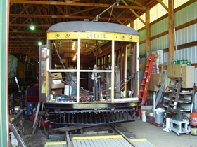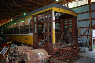 Open For Tours - Saturday barn tours resumed on May 14. As always, tours are from 10:00 AM to 4:00 PM, with expert members as guides. Come see SHRT line car OX and CIRR (ex-Cleveland Railway) 1225, and watch the progress we're making on SHRT 303.