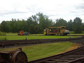 Day Of The Triffids- Brush and grass cutting is one of those “unromantic” (eg. non-railroad) tasks that's absolutely vital to maintaining a sucessful museum. With record setting rains, the grass cutters have been busy. Fallen trees joined the usual saplings and weeds as unwanted biomass. And before NOT&L 1515 could be moved, leafy and thorny things had to be cleared out to access the car. Some flooding occurred in the McCarthy barn, and members cleaned that up. Thank you to all the volunteers who work to make our property attractive for the public.