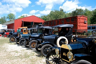 Charge Of The Model Ts! - Part of NORM's mission is historical outreach to other preservationists. This goal was achieved on the first Sunday of September when a Model T club visited our sprawling complex. Almost 90 restored Model T Fords arrived in groups throughout the day. Variations included a fire chief's roadster with axe and siren, trucks and depot wagons, and a racer conversion. Of course member volunteers were there to show the car enthusiasts how we “trolley jollies” handle restoration for our collectables. Shaker 25 and CRC 0711 were spotted for photo ops, giving the two modes of historic transportation a chance to appear side by side.