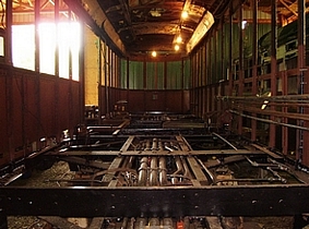 Car Barns - Museum Volunteers have put in many hours over the past year to make our barns safe and accessable for our summer walking tour guests and work crews alike. One of our most important projects has been installing ADA compliant pedestrian crossings & ramps in the barns. As of July 2009 we have full decks across the front of both the Bennett and McCarthy barns complete with ramps between the tracks for full access to the cars on display.