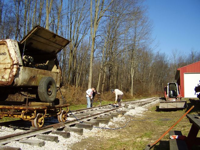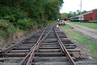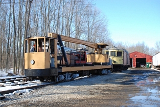 Track Work - In September the main track switch near the access road crossing was rebuilt. Bad ties were replaced and the switch stand was thoroughly rehabilitated. A chronic washout problem at the nearby drainage culvert was fixed with a retaining wall. And the notorious derailment problem at the 1-to-2 yard switch was fixed by leveling and re-ballasting track at the switch points. The result? For the first time in NORM history CRC 0711 can run all the way to the Prunkard barn. This work paid off in November when the Trolleyville cars were switched to the barn from the unloading track by the mighty Hemi-powered crane.