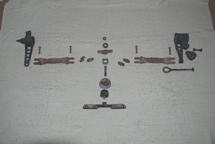 • Overhead Hardware - Shaker/RTA OX was a line car, and Trolleyville continued to use it in that capacity. So of course it was loaded with overhead repair parts. All these parts had to be removed before transporting the car. One volunteer managed the job, and brought the parts to NORM- at some risk to his van's supension.