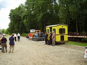 The weather was nice on Sunday afternoon and Museum members and their guests were treated to a delicious picnic lunch, a walking tour of the facilities and inspection car rides from the Prunkard Maintenance Building siding all the way out to the south end of the line and back.