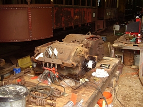 Compressor Work - After months on the back burner, repair activity on CRC 0711's compressor has resumed. The plan is to get the unit back on 0711 so TTC 2778's compressor can go back to its car. Though adequate as a stop gap, 2778's compressor doesn't really supply the air volume a heavy work car needs. Besides, the Witt car will soon need it for its own systems.