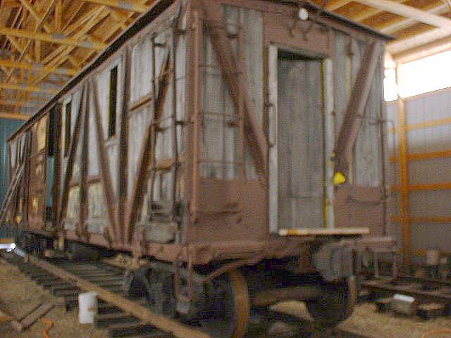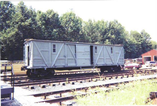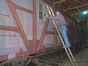 The restoration of PRR outside braced boxcar nears completion. (2002)