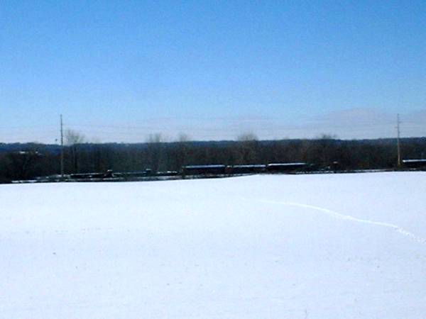 This looks like a view from a "prosperity special " crossing the plains of Ohio - but you are actually looking at several cars stored on the south side of Buffham Rd., as seen from across the farm fields ( note the deer tracks in the foreground ) as seen from Ryan Rd on 1 - 2 - 01