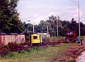 This photo shows one of the PCCs from a reverse angle to the last shot, while the trackmobile moves the ex-CEI flatcar around the loop track (jk 11/00).