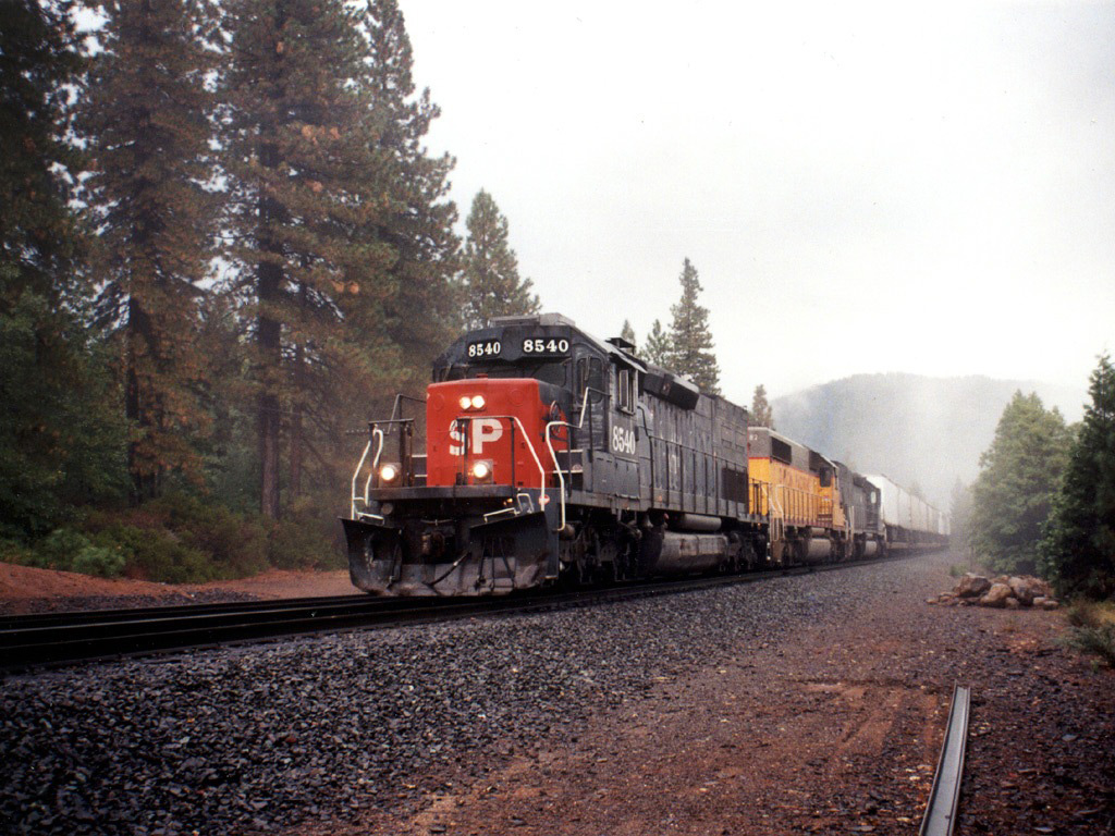 SP 8540 N rolls out of the mist @ Mott, CA