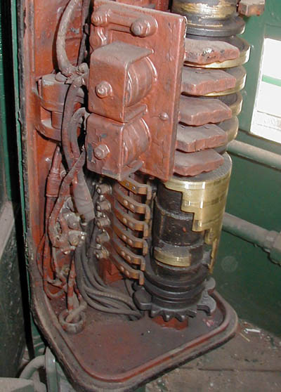 Below: The inside of the heating relay case, Railway Utility Co. Type 1900 Contactor.