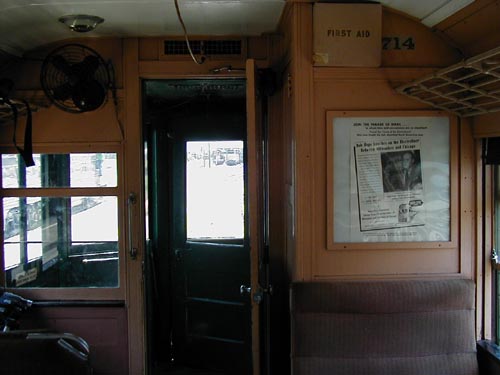 Car 714 is a standard coach that was modernized in 1940 for Skokie Valley service. The car never received a silverliner scheme, but received the lower ceilings, fish-eye lights, and new seats. This car operates regularly at the museum.