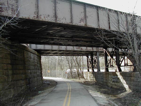 Going under the CNW, note the curvature of the bridge abutment for the curve of the North Shore tracks.