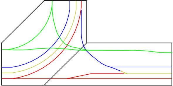 All turnouts are operated by Tortoise machines powered by Digitrax DS54 Stationary Decoders controlled by DCC switch commands. The DCC switch commands are generated by Team Digital SRC8 circuits in response to push-button operation. Three identical control panels are provided, each with push-buttons and LEDs to show the selected route. These panels are interconnected by either a private or the layout LocoNet so that a change made on any panel is reflected on the other panels. For more information click here. | ||