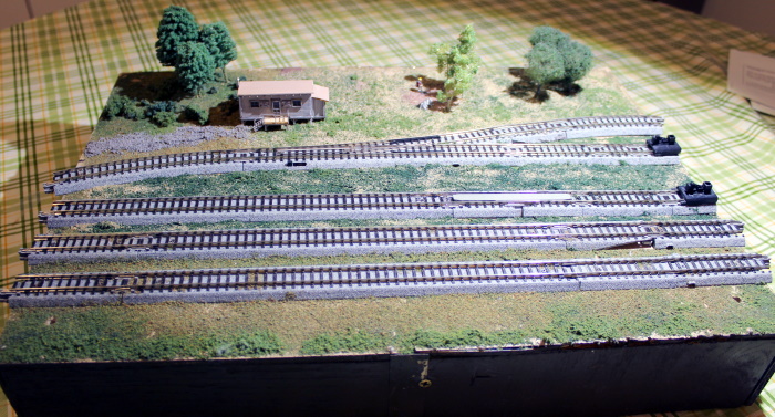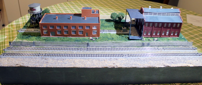I am a train host on the "Piedmont Service" Amtrak runs between Raleigh NC and Charlotte. A good portion of this run is on the Norfolk Southern "H" line which features a wide selection of auto junkyards and small industries. I decided to add industries of my own to this module, which features a foundry and an engine service facility which connects via a spur to my Farm/Tower/Gravel quad set. "H Line" also has special significance because it was one of the last kits produced by the late Terry Nathan, one of the pioneers in helping to make T-TRAK what it is today. | |||