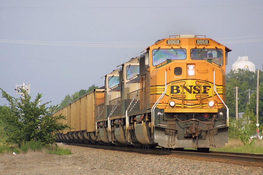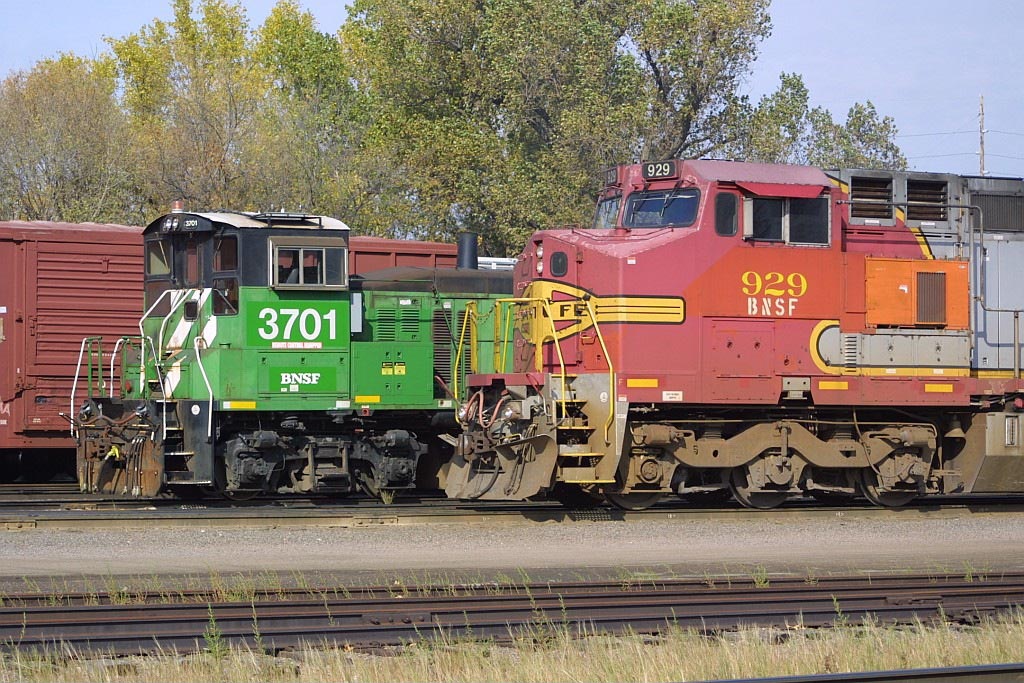 is a remote-controlled yard engine, while the Santa Fe GE is leading a westbound road train.