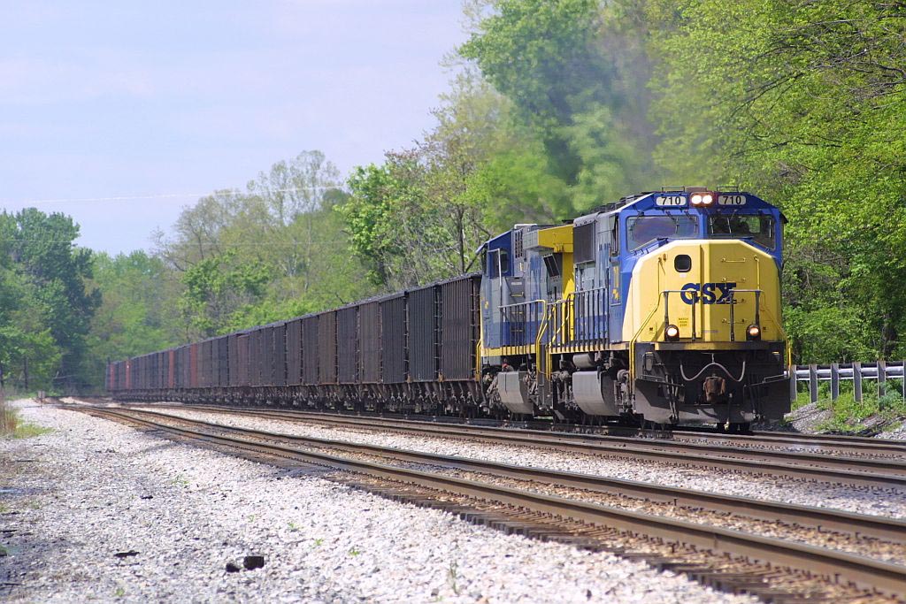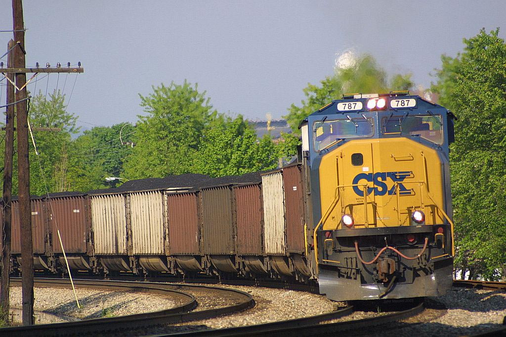 Freshly Painted SD70MAC #787 leads one of a seemingly endless stream of Coal Trains around a curve