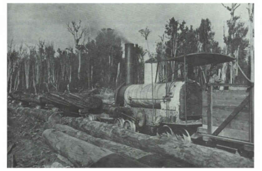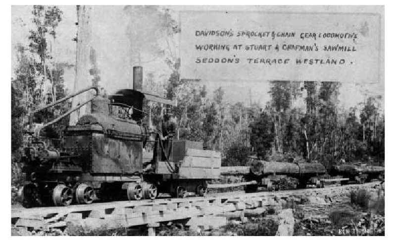 A Davidson locomotive working on a wooden-railed bush tramway, the kind of service for which they were designed.