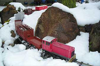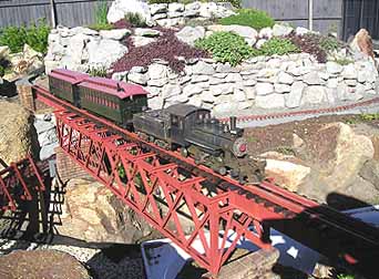 There are many outdoor 'garden railways' in America, Europe and the UK, but there are only about 6 in Christchurch. The track and trains can all be purchased ready - to - run. But because I want some New Zealand looking trains, I will be building my own. Construction on this railway started in 2004. To see the latest progress, check out the What's New? page. You can view photos of some of the buildings, engines and wagons I have built. Or view a range of photos including other peoples trains running during visits.