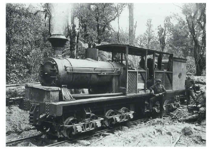 | Remarks: When the NZR Stores Branch took over the Mountain Rimu Timber Co's mill and tramway at Mamaku, near Rotorua, it aquired this locomotive. Driven by a two-cylinder vertical steam engine in the cab, the drive was taken down through a spur gear arrangement to a longitudinal line shaft where skewed bevel gears transmitted power to each of eight axles. The locomotive could negotiate a 99-feet radius curve. In 1928 the loco was sold to the Marton Sash & Door co. |