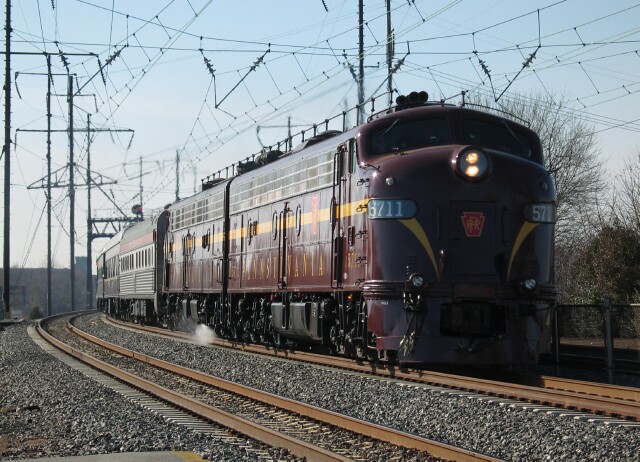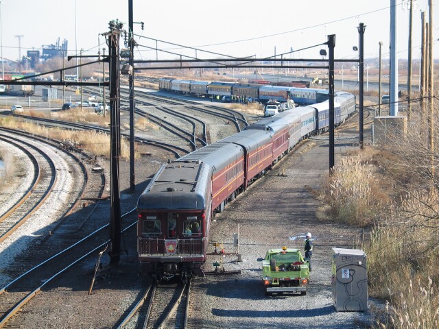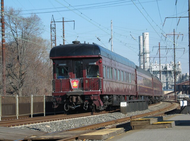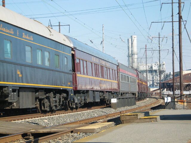 PRR 120 brings up the rear as the train arrives at Greenwich Yard in South Philadelphia. |