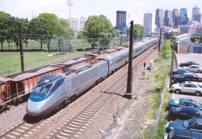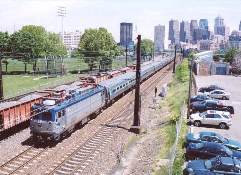 Amtrak AEM-7 925 train leaving Philadelphia as