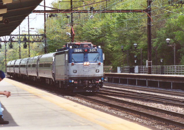 Amtrak AEM-7 924 passing through Metuchen station. |