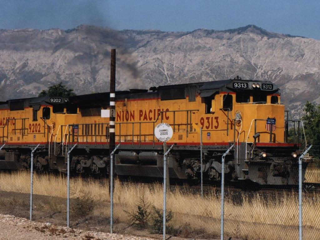 the left. Union Pacific 8444 makes a run to Cache Jct.