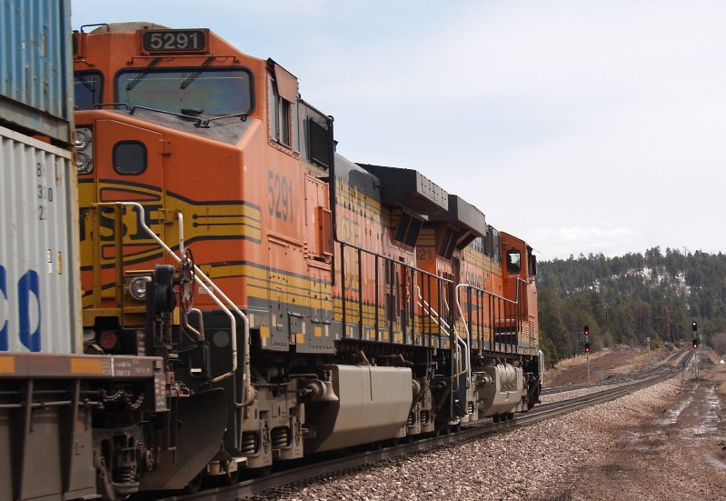 From the west, trains come in to view as they crest the grade while from the east they can be seen approaching from some distance. On the day I was there, it was cold and snow had fallen the night before. This part of Arizona gets very cold and can be very white from late summer to early spring.