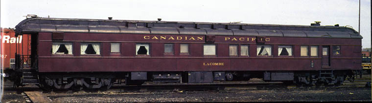 Business Car Lacombe at Smiths Falls, March 24, 1985. David P. Stremes It was rebuilt in April 1943 from sleeping car Glen Roy built August 1921.