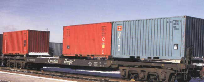 Ten more production-built cars were used in regular Montreal-Toronto pig trains, five being used each way each night. But, it was all for naught. The CPR's Chief Mechanical officer Charlie Parker, flat out refused to have anything to do with four wheeled cars. This in spite of the fact that very extensive testing proved them safe and trouble-free. Even CPR's Tony Teoli (who went on to fame for the bathtub coal car he designed), pronounced them suitable. R.A.Emerson, Vice President, the executive who authorized the project simply would not overrule the decision. New York Central was heavily committed to the Flexi-van system, and no other railway was interested in containers as regular piggyback was seen as being the best at the time. A promising product came to an abrupt end. Eventually, piggyback was to be phased out in favour of containers, especially with the advent of marine containers and double stack operation. Containers were even to replace boxcars in many cases, including pool car operations. At its peak, three trains a night were operating in each direction on the heavy Toronto-Montreal route. This was to change when the 401, a limited-access highway was opened. Smith put many of its trucks back on the highway, in spite of the fact it was now 100% owned by CP. While piggyback service continued, it became more and more difficult to compete with trucks, and generally only longer hauls prospered. Smith Transport and CP Express were finally merged and eventually went out of business as deregulation took its toll on LTL trucking.