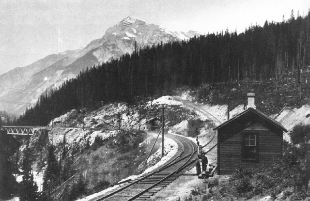 Push engine at safety switch #1 Mount Field in background 1898 M.M.Stephens operator Field.