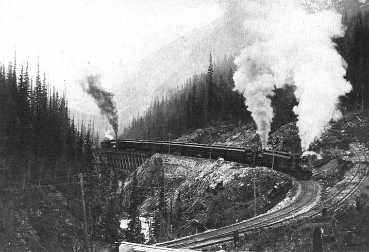 Three engines to haul eight passenger cars at #1 safety switch 1898. M.M.Stephens operator, Field. |