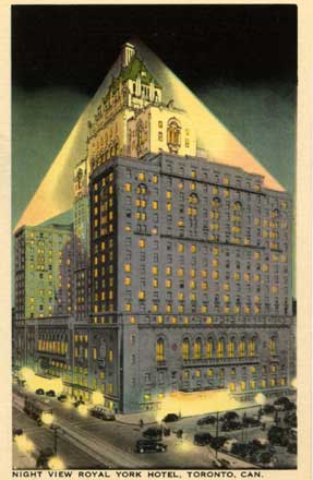 Due to the continual expansion of facilities, the Hotel Department was created in 1905, prior to which these facilities were operated by the Sleeping, Parlor and Dining Car Department. The flagship of Canadian Pacific Hotels was, and still is, the world famous Royal York across from Union Station in Toronto. Opened June 11, 1929 at 28 floors with 1,048 rooms, a 12-bed hospital, 10 passenger elevators and a 50 ton pipe organ, it was the tallest building in the British Commonwealth. Things began to change with the opening of the Connaught Tunnel in 1916 the line was relocated and the new station was over a mile away. Guests used a Tally-Ho to reach the House. Renovations were carried out in 1922; however, it was closed September 15, 1925. Safety in the old wooden structures was a concern following a serious fire in 1924 at Chateau Lake Louise and in 1926 at Banff Springs Hotel; and new construction was planned but never carried out. Glacier House was finally demolished in 1929. Changes Following the Great War (World War One) 1914-1918, the popularity of private automobiles and the spread of better roads brought about changes to travel that affected Canadian Pacific. Rail traffic that had dropped off during the war did not recover to its pre-war level. Prior to the war private automobiles were prohibited in national parks; this along with the lack of roads meant rail travel predominated through the mountains. Opening of the Banff-Windermere Highway through the Vermillion Pass in June, 1923, changed all of that. It provided access to the area as well as to and from similar national parks and hotels in the United States. Combined with this was the new competition from Grand Trunk Pacific which in 1921 developed Jasper Park Lodge in the Rockies, promoting the North American Alps to tourists the same way Canadian Pacific did; and even from Canadian Northern, both of which soon became Canadian National Railways. The CPR responded to this with increased advertising including motion pictures through the newly-created Associated Screen News formed in 1920 and even got into radio through Canadian Pacific Telegraph in the 1930's. Creation of big festivals, annual events, at major hotels across Canada and introduction of bargain excursion fares and all-inclusive tours were all tried to boost business. The CPR had already begun adapting to the coming of the automobile. It