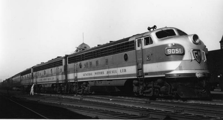 GMD 9051-9052-9053 demonstrating on CNR, shown here at Truro, Nova Scotia, March 26, 1950. George Parks