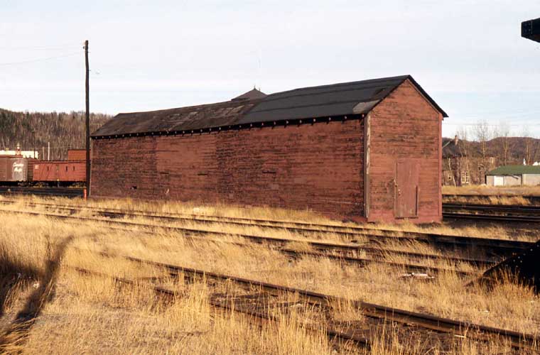 Coke shack used to store coke and kindling wood for van and station stoves. Torn down c.1974-75. November 1972.