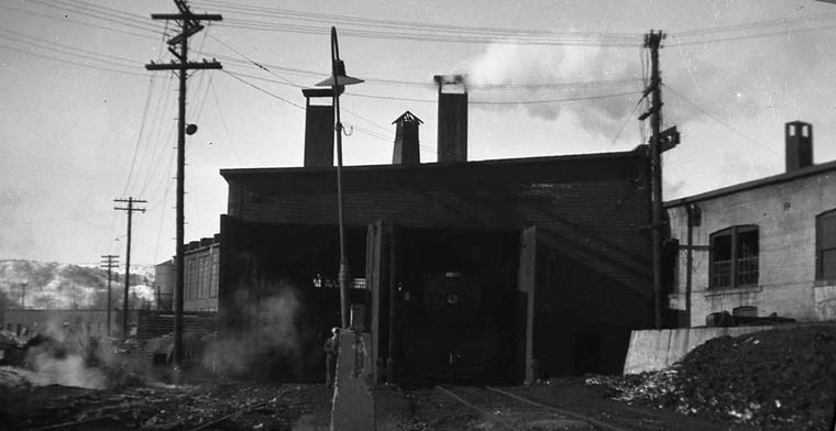 Earlier view looking east from the early 1940's with old coal chutes