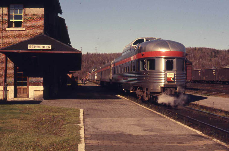 1416 No.2 running 16 hours late eastbound at Schreiber. c.1970