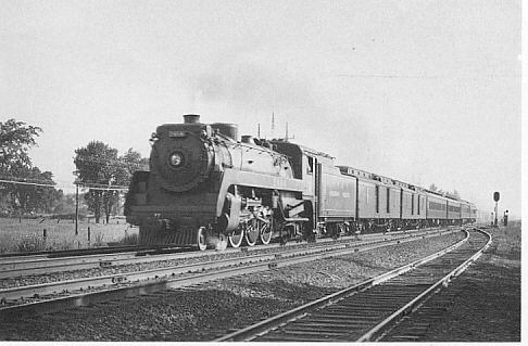 New G3 class 4-6-2 Pacific type built by Montreal Locomotive Works in June 1948, making its first run on passenger. Seen here one mile east of Oakville westbound on #731. The background scene was changed in 1953 when Ford built its automobile plant here. The photographer had worked on this engine in John Street roundhouse on the night shift, then on his way home took this photograph. Newton Rossiter. | ||||||