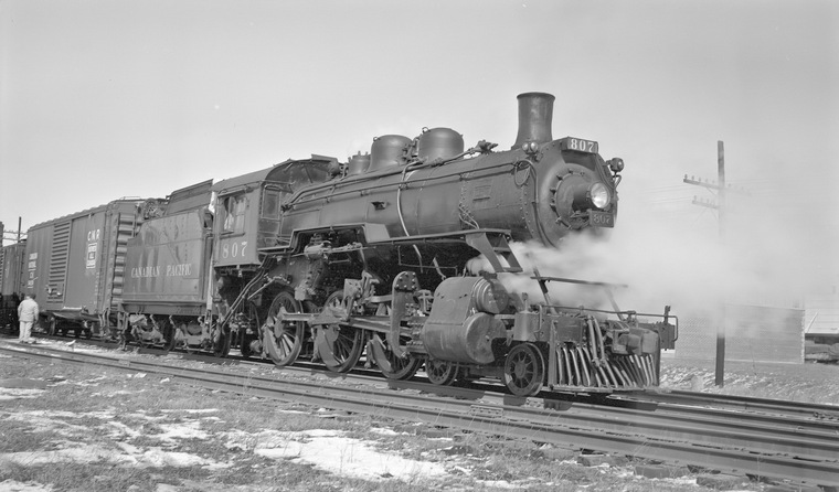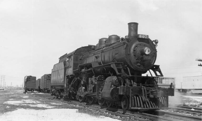 paid yard rates and conditions. D-10e class 807 MLW #45601 10/1908 Transferred from Smiths Falls in January 1957 for repairs, it was one of last steam locomotives through West Toronto back shop. Outshopped May 27, 1957. It quickly wound up in Lambton roundhouse for some further repairs and then was stored for months in the Bone Yard at Lambton before being returned to service in November.