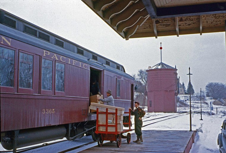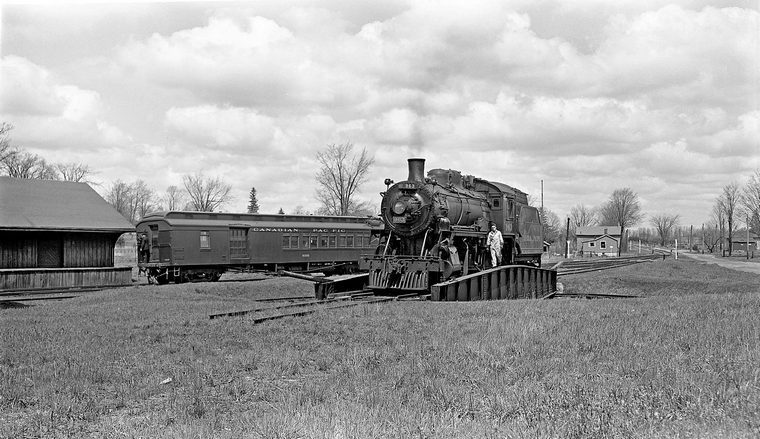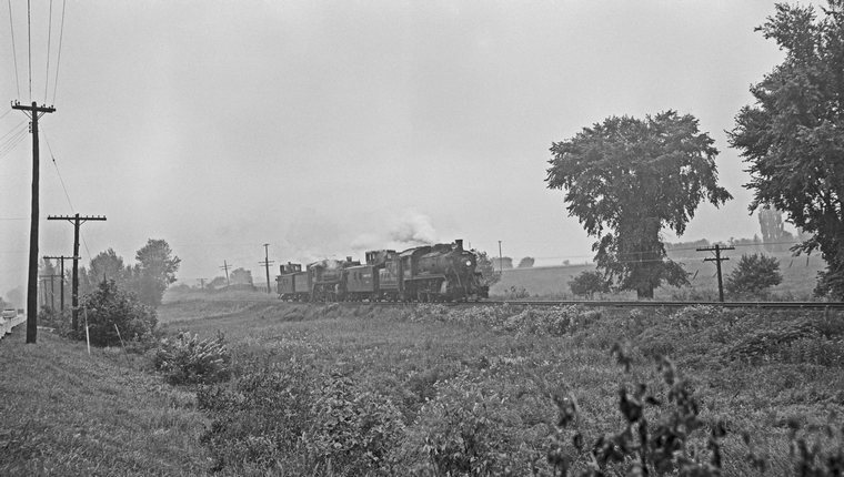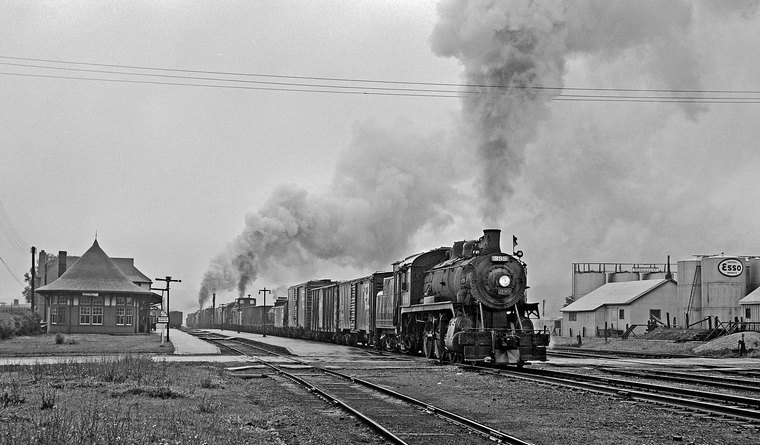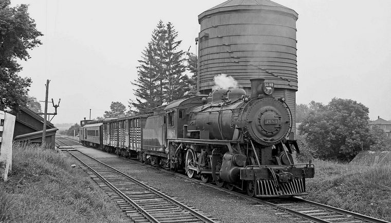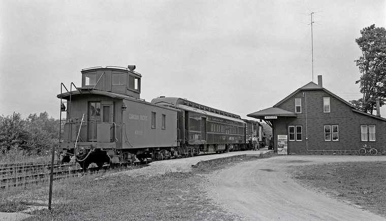 953 Elora Mixed north bound waits for time at Alton. Aug.15/1953.