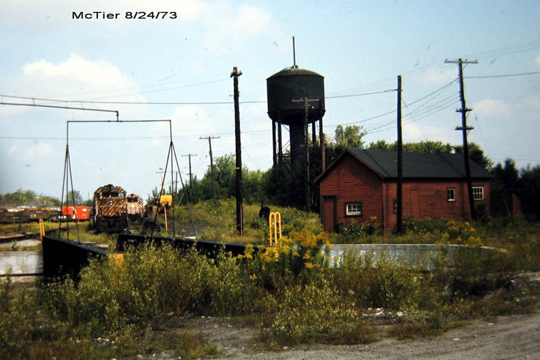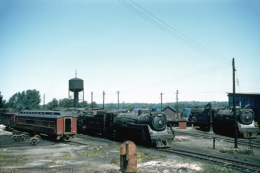 2463, 2334, 2407 on Mac Tier shop tracks and a Royal Hudson on the table mostly hidden. Note the water tank gauge showing half full.
