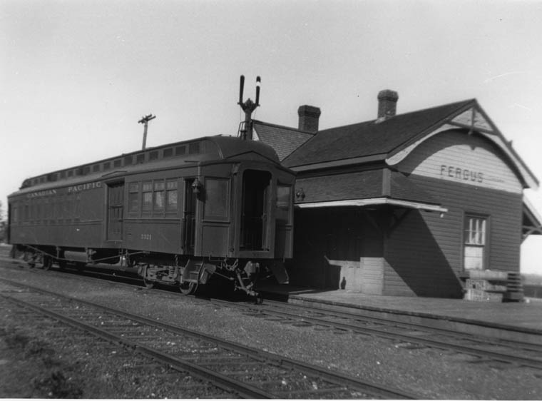 Not much changed in this 1940 scene with the Elora Mixed train's wooden combine 3321. Al Paterson