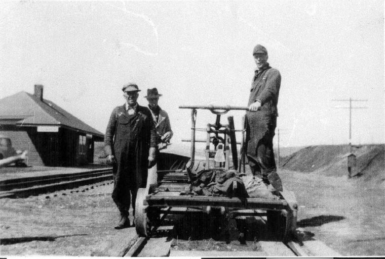 Left to right: Bill Stinson, Horace Hyde and section foreman Arthur Hyde. Humber 1947