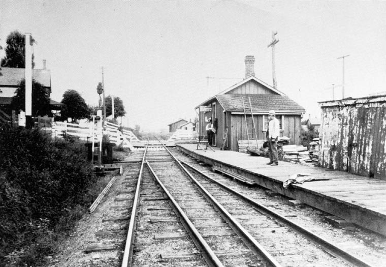 Old Weston Station, John Street, looking south with GTR station in the distance. Note the stub switch with high stand. August 1898 Canadian Pacific A12230