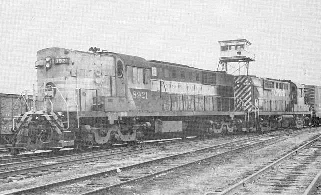 yard ![]() One-of-a-kind 8921 "Empress of Agincourt" and 8738 arriving at Lambton on the Transfer, April 1974. Ron Lipsett. Note: Yardmaster's tower next to yard office was no longer in use. More views of 8921 at Lambton. Demonstrator photos of this engine.