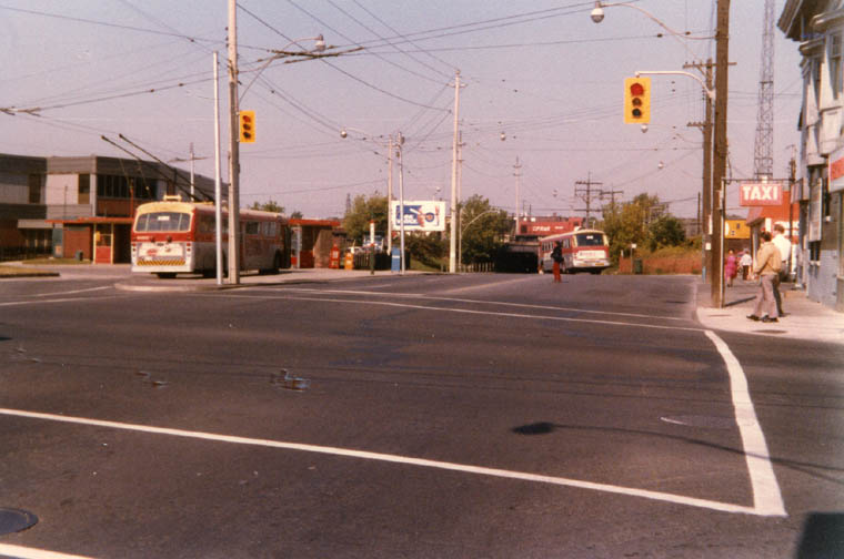 The old wooden Car Department building in the Here Yard was demolished along with the tiny wooden beanery located between it and the yard office when Toronto Yard opened. Due to the distant location of Toronto Yard and the lack of public transportation, plus the fact many employees lived near Lambton, an employee shuttle train using Budd Cars (RDC) was operated around-the-clock, seven days a week from Keele Street. West Toronto Yard lost most of its shops following the opening of Toronto Yard in April 1964. This included all of the car shop buildings, powerhouse, stores building and the RIP tracks themselves. The two auxiliary trains of course went to Toronto Yard as well. Remaining was the Erecting Shop minus the Blacksmith shop and the tender shop and office building. The transfer table remained in use, as did the turntable along with most of the roundhouse. The Back Shop was no longer required by Motive Power, so it was taken over by the Maintenance of Way as an equipment maintenance shop. Here track machines were overhauled in winter. A portion of the Machine Shop was used by the Stores Department, while the roundhouse was used by the Signals Department, and the B&B (Bridge and Building Department). These structures remained in use until 1999 when all were demolished to make way for a Supermarket, which was sold before it opened. It became a lumber and building supplies store under the name Revy. The coaling tower was long-gone as was the ice house many years earlier, certainly pre-1955. West Toronto Freight Shed located near the Diamond, and just west of the Depot was demolished December 1978 following the end of LCL service. An overhead crane, and team tracks were located between the Shed and the Depot, and these too were eliminated. Part of the shed was built under the Old Weston Road bridge which was closed to automobile traffic in 1972 due to its deteriorated condition, and later to pedestrians. The eastbound Galt Sub. mainline had a 25 mph curve that made its way between bridge supports. Realignment of this curve late in 1979 to 50mph required demolition of the bridge, leaving the long street approaches in place for many more years. It was not until 1999 that the north approach was finally removed to allow for construction of the Wye Connection between the Mac Tier Sub. and the Galt Sub. via yard tracks.