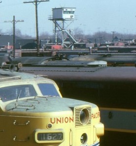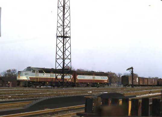 Shops tracks looking southeast. Yardmaster's tower in background. It was built to train yardmasters how to work from a tower rather than on the ground as they had always done. Toronto Yard is just days away from opening! .