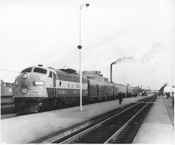 The Bullet #359 to Detroit, westbound at West Toronto depot October 8, 1962 David Hales 1404 FP7A (GMD A524 6/53) with combine 3053, coaches 2108, 2126, 2159 and 1325 Conventional train powered by 89 mph "covered wagon" A unit, is replacing normal RDC consist. Back (Use your browser Back button) |