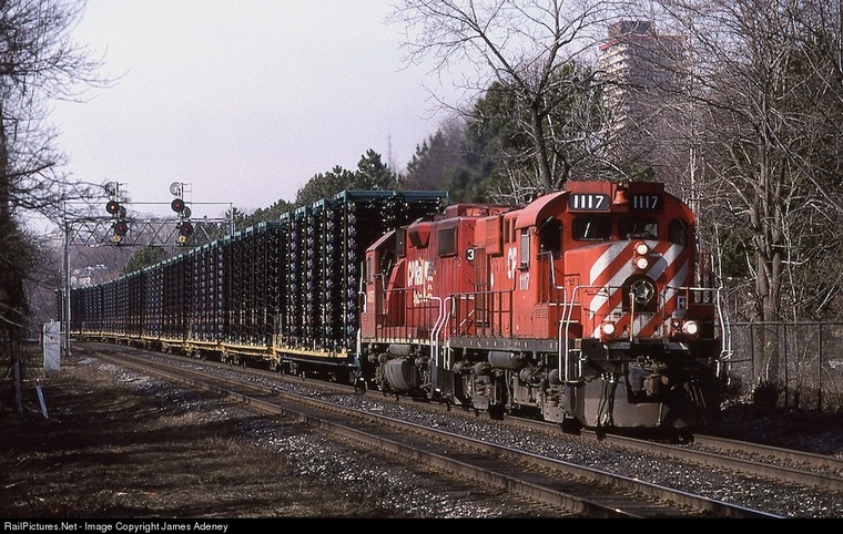 Toronto Subdivision nearing Leaside. 1117 converted 1996 from RS-18 1836 nee 8796 MLW 82422 7/1958